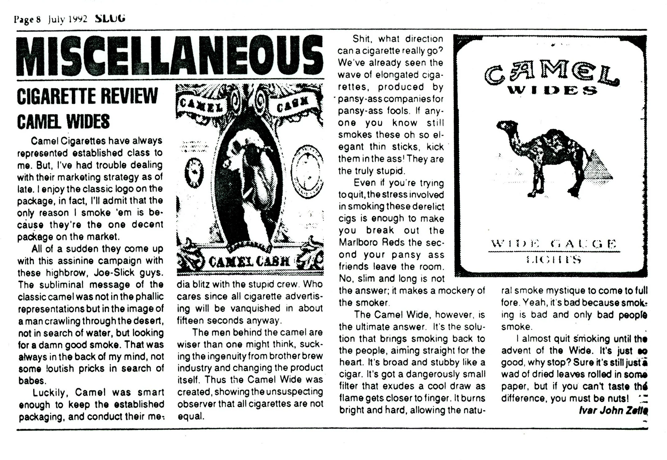 The men behind the camel are wiser than one might think, sucking the ingenuity from brother brew industry and changing the product itself. Thus the Camel Wide was created, showing the unsuspecting observer that all cigarettes are not equal.