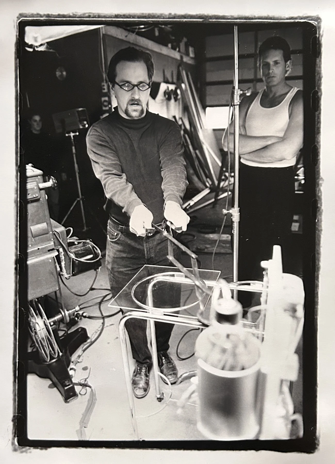 This commission would take me to the pyramids, find me floating above the ground in a sea of balloons over Park City, stranded in the desert threatened by a biker gang, as well as surging through a cascading sea of metal and celluloid, in a fish tank of sorts. I would also come face to face with a Frankenstein monster of my own creation, within the small warehouse bunker I resided in, just large enough to build a mad scientists laboratory. Little of this was of much consequence to few outside the scrappy, amazing volunteer team we’d assembled to support the production, all eager to support the effort and experience the thrill of shooting 35mm, with color correction courtesy of Disney Studios. But that was plenty enough, the greatest moment I would have throughout my time across Sundance’s sprawling Utah campus. It would have much more influence on my later career, as I moved into dubious territory as an art dealer, somehow dovetailing into a role as a leading curator of digital animation. It was there that Sundance had its most significant, long range impact on me, everything in between suddenly making sense.